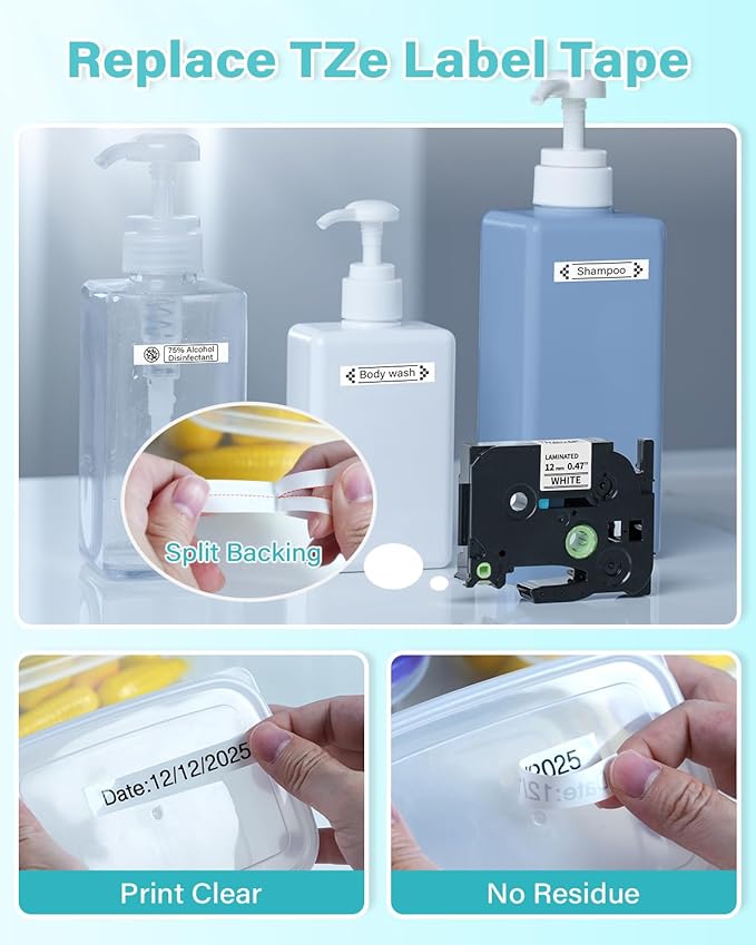 - 【Durable TZe-231 12mm 0.47 ptouch label Tape】This replace for TZE tape 12mm 0.47 white resists water, oil, abrasion, fading, and peeling, withstanding extreme temperatures -22°F to 258°F (-30°C to 120°C)—ideal for indoor/outdoor use.