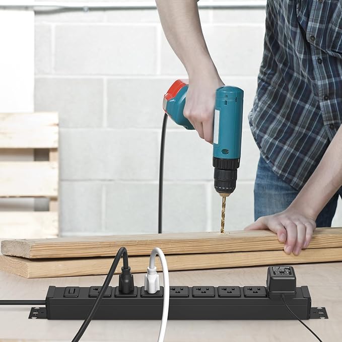 - Metal Power Strip 20 Amp : The center hole distance of AC socket is 1.57inch, Providing enough space between the sockets to accommodate big plugs. Heavy duty power bar was connected with 10ft 12AWG/3C power cord, Equipped with 20A high current, Max: 125V/20Amp/2500W.