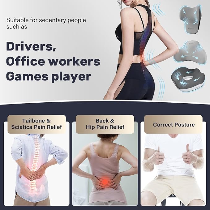 - Sitting Comfort & Relive Pressure: Our driver's seat cushion and lumbar support headrest pillow are made of high-density, slow-rebound memory sponges, ensures strong support. The car back support can absorb and relieve stress on your body. The cushions can relieve your hip pain and sciatica. Making it perfect for when you're in the car or taking a break at home