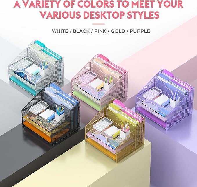 - Unique 3+2 Shelves Design: 3 Tier sliding trays are perfect for storage all your documents, file folders and other desk accessories, 2 upright section is ideal for place your other paper/letters vertically.