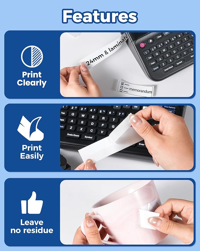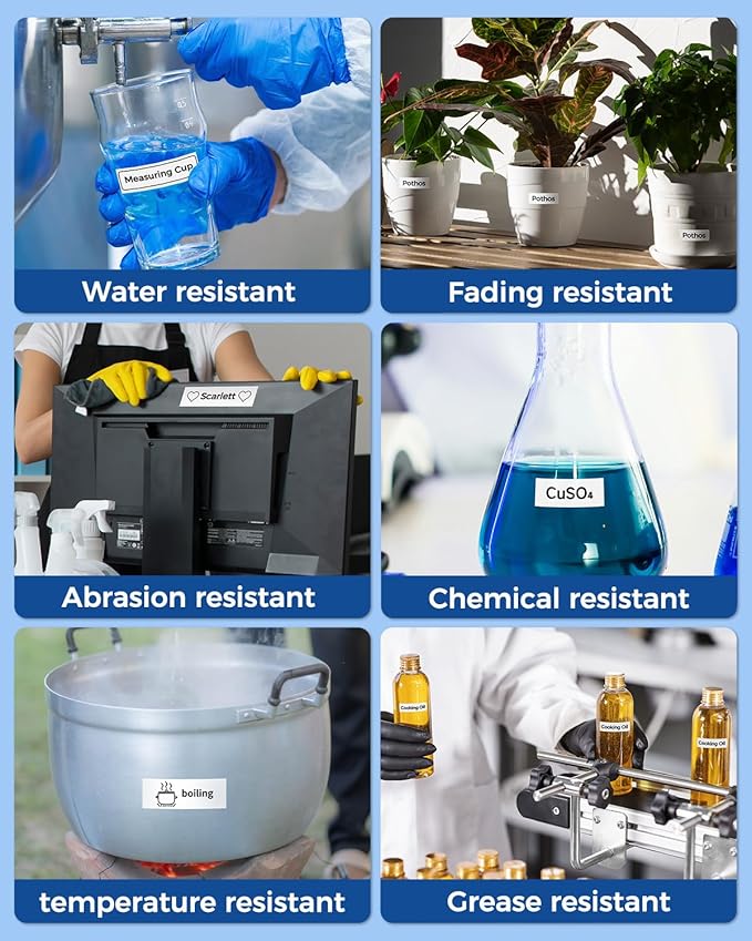 - Compatible with brother label maker tape 24mm laminated: These labels are finished with a clear protective film, providing long-lasting print quality that is water-resistant, oil-resistant, UV-resistant, temperature-resistant, and rub-resistant.