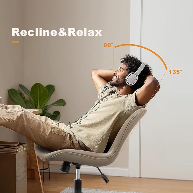 Office Chair, Armless Desk Chair with Wheels, Ergonomic Comfy Home Office Computer Task Chairs,Faux Leather Padded Cute Vanity Chair, Adjustable Height Swivel Chair with Back, Khaki