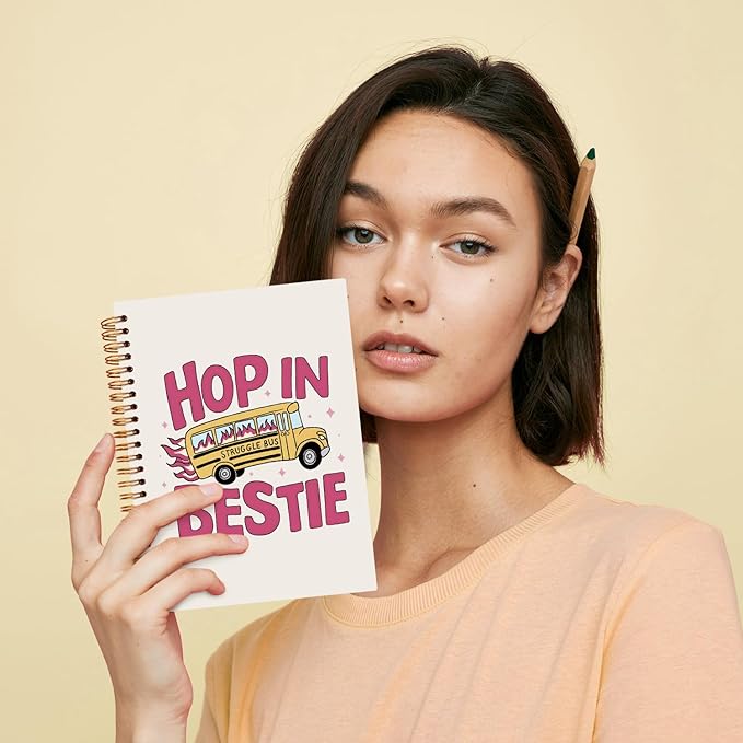 JXREQ Funny Mental Health Notebook, Mental Health Therapist Gifts Journal Notebook, Anti Anxiety Gifts Journal for Women, Struggle Bus Hop in Bestie Spiral Notebooks 5.5x8.3