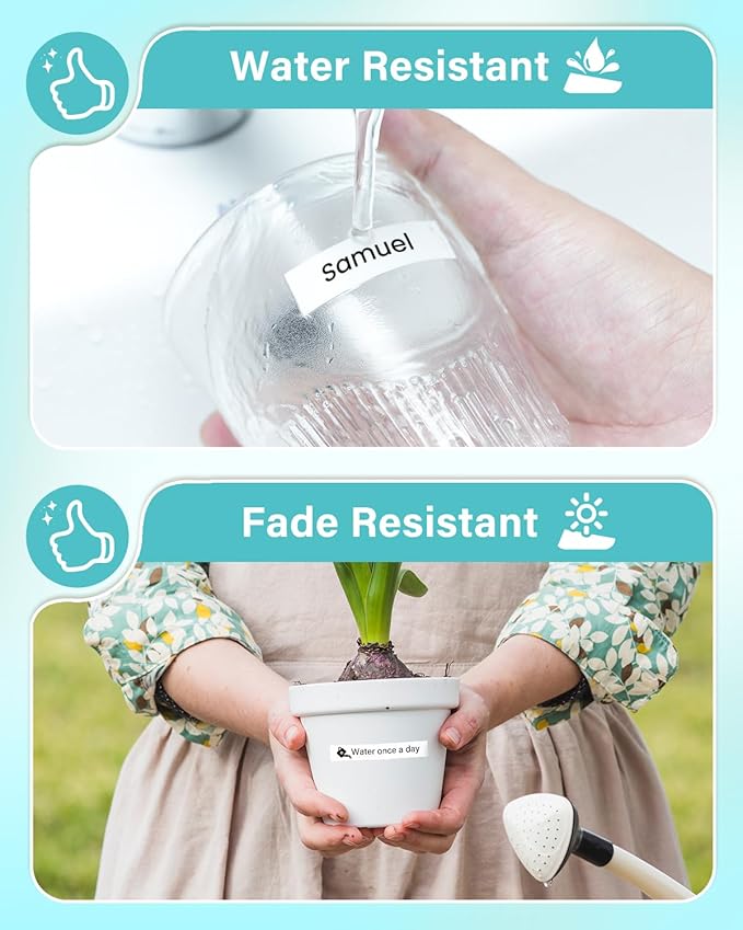 - Durable Laminated Ptouch tape: withstands water, fade, sunlight, and temperature-resistant (-30°C to 120°C) for long-lasting labels that stay well at indoor & outdoor