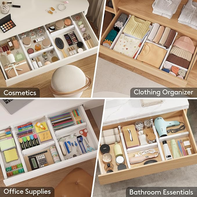 - Premium Material: Our adjustable drawer divider is made from high-quality ABS material, which is more sturdy for long-term use and crack-resistant than wooden material. Both ends are designed with premium EVA foam to prevent scratches and damage to the drawer walls