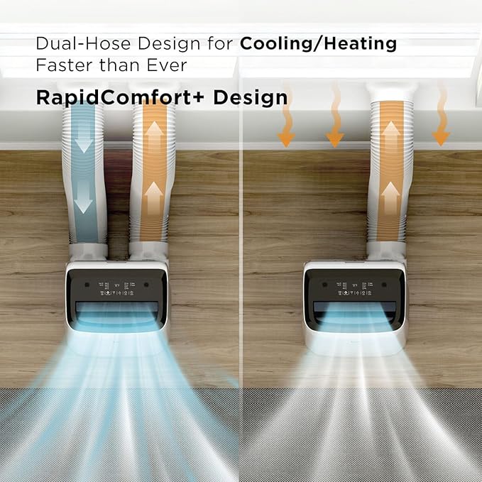 - Rapid-Comfort+: TCL’s portable inverter AC features a dual-hose RapidComfort+ system expertly engineered to seal in cold air and block out heat, ensuring faster, stronger, and more efficient cooling.