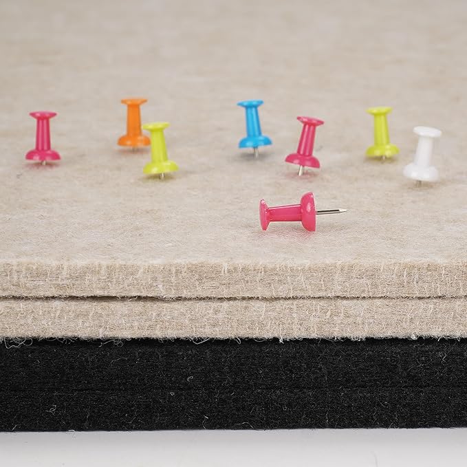 - Lightweight & Long-Lasting: The felt bulletin board is made of recycled polyester, they are safe and odorless, they are also very light but dense and sturdy. With a thickness of up to 0.35 inches can hold your pins firmly in place without falling off