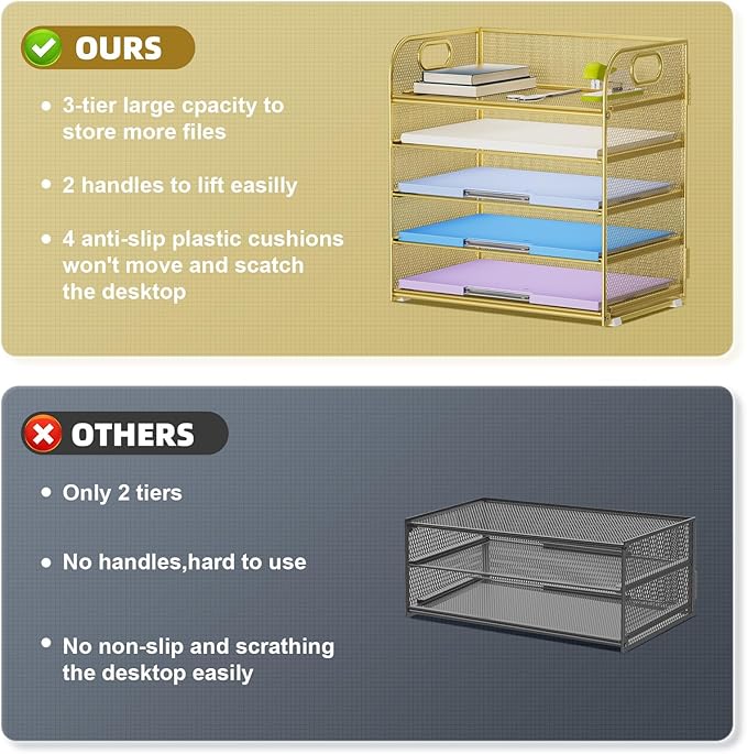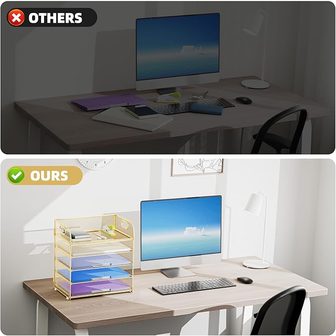 - 【PREMIUM QUALITY】The mesh desktop file organizer is made of lightweight durable metal mesh and reinforced with a solid steel frame that makes it have long-lasting strength and reliable performance.