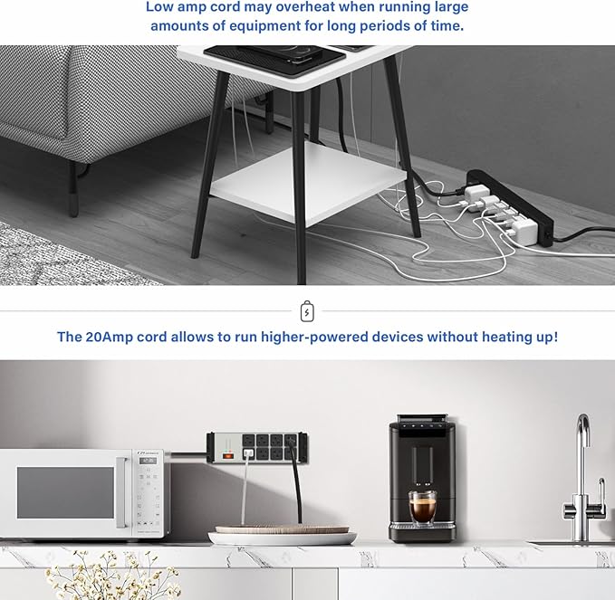 - 15FT Heavy duty extension cord 12 awg, can perfect for carrying 15Amp, 1875w of full power. And running a lot of equipment for long periods of time and without overheating.