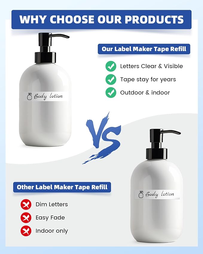 - Pre-cut backing for easy peel and apply! Labels apply quickly, and when changing labels, our replace for TZ 12mm 0.47 Inch ptouch label tape easily removes without leaving a sticky stain.