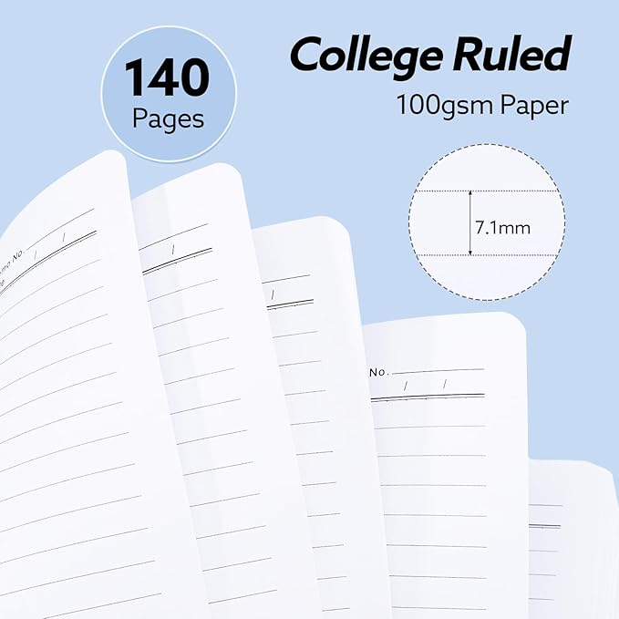 - 【100GSM Paper】The hard cover notebook is made of 100gsm thick paper, which prevents ink penetration and ghosting, providing a smooth writing experience. The inner pages are designed with 7.1mm college ruled to keep your notes neat and tidy