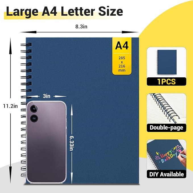 - 【Thickened Hardcover】The reinforced 1200gsm hard cover is thicker and more sturdy, which greatly protect the inner page well, such as resist curling at bottom.