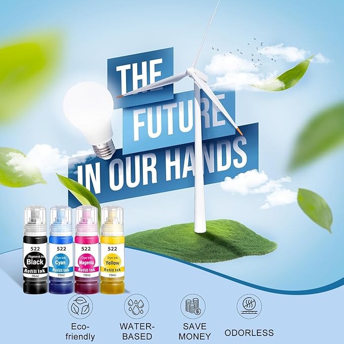- Quality you can trust: Every high-capacity compatible with epson ecotank ink 522 passes strict quality tests. No ink leakage during transportation. 24-month warranty included—defective ink gets replacement.