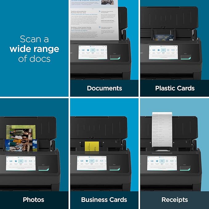ScanSnap iX2500 Wireless or USB High-Speed Cloud Enabled Document, Photo & Receipt Scanner with Large 5" Touchscreen and 100 Page Auto Document Feeder for Mac or PC, Black