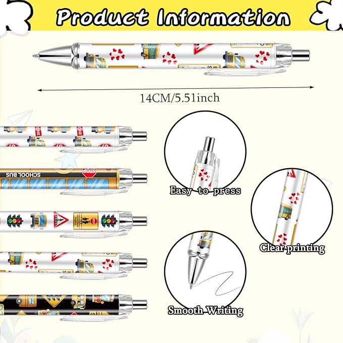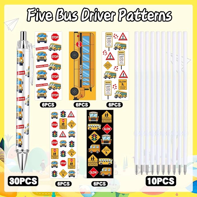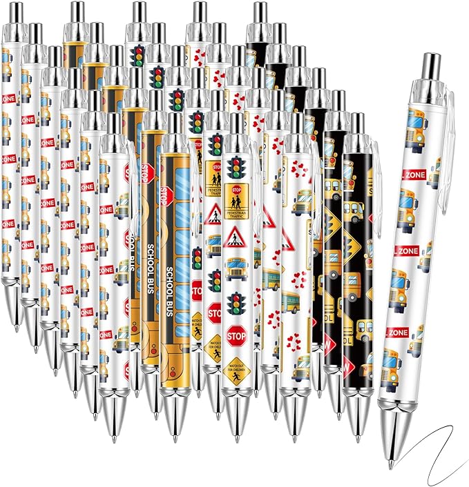 - Bus Driver Design: Our teachers pens bulk feature vivid and cute school bus patterns and road signs.Each pattern adds a cheerful educational touch to your stationery, helping kids recognize the signs and reminding them to be safe, perfect for student learning and teacher teaching.