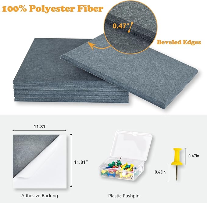 - ADDITIONAL FEATURE - The polyester fiber panels with porous structure help absorb air vibrations in sound waves, reduce sound reflection and echo. Install as a whole wall for higher noise reduction