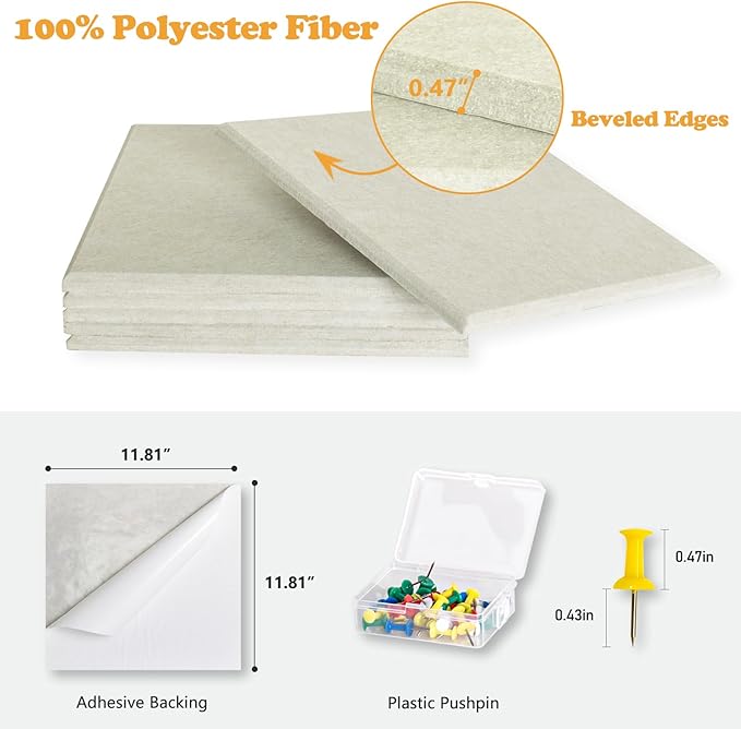 - ADDITIONAL FEATURE - The polyester fiber panels with porous structure help absorb air vibrations in sound waves, reduce sound reflection and echo. Install as a whole wall for higher noise reduction
