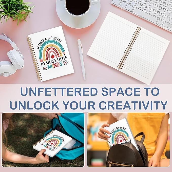 SNNDER Boho Rainbow Teacher Notebook Journal, Teacher Appreciation Gifts, Back To School Gifts for Teachers, It Takes a Big Heart to Shape Little Minds Hardcover Spiral Notebooks 5.5x8.3 Inch