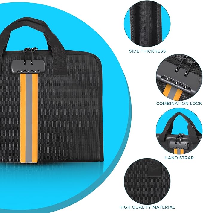 - High-Quality Materials:Fireproof expanding file organizer made of 3-layered silicone-coated fiberglass, withstands extreme temperatures up to 2500℉ has passed SGS testing(UL94 certified). Protects important documents from fire, flood, and wet weather conditions