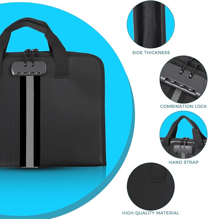 - High-Quality Materials:Fireproof expanding file organizer made of 3-layered silicone-coated fiberglass, withstands extreme temperatures up to 2500℉ has passed SGS testing(UL94 certified). Protects important documents from fire, flood, and wet weather conditions