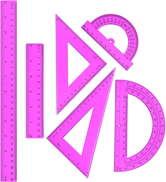 - Complete math tool set: you will be provided with 2 protractors of 15.5 cm and 10.4 cm, 2 triangle rulers of 45 degree and 60 degree, 2 straight rulers of 6 inch/ 15 cm and 12 inch/ 31 cm, totally 6 pieces; The complete combination meets the needs of various occasions, you can choose the right ruler to work according to your needs