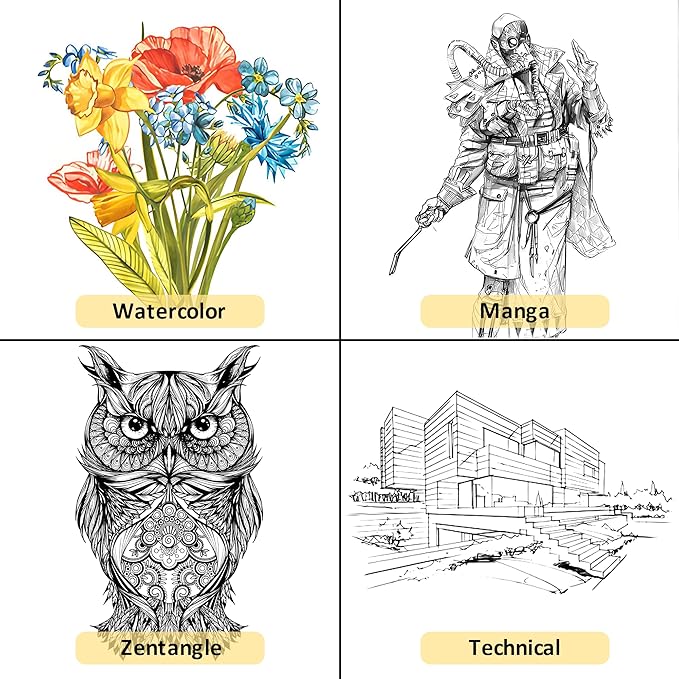 - Compatible with Watercolor, Markers & More: Use XWT art pens before or after watercolor, colored pencils, markers, or acrylics. The ink won’t smear once dry. Perfect for bullet journaling, manga, comic drawing, Zentangle, sketching, outlining, and architectural illustration.