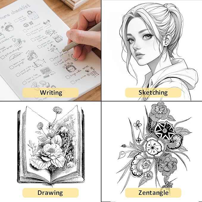 - Archival-Quality Pigment Ink – Waterproof & Fade-Resistant:XWT fineliner pens use rich black water-based pigment ink that is quick-drying, waterproof, sunproof, acid-free, and non-toxic. No smearing, ghosting, or bleeding through paper – ideal for long-lasting artworks, technical drawings, and note-taking.