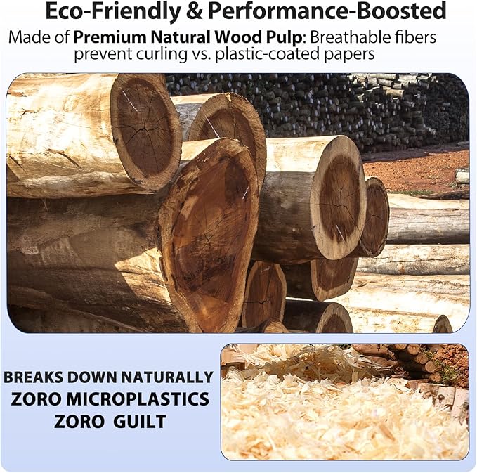 - 【Eco-Friendly & Performance-Boosted!】 Made of Premium Natural Wood Pulp: Breathable fibers prevent curling vs. plastic-coated papers. Breaks down naturally – 0 microplastics, 0 guilt! Natural texture = smoother writing + stronger ink grip!