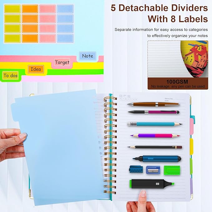 - Label compartment:Organize smarter with 5 movable dividers and 8 adhesive labels. This 5 subject notebook transforms your writing experience by helping categorize different topics—ideal for students or professionals who prefer tidy, efficient note-taking.