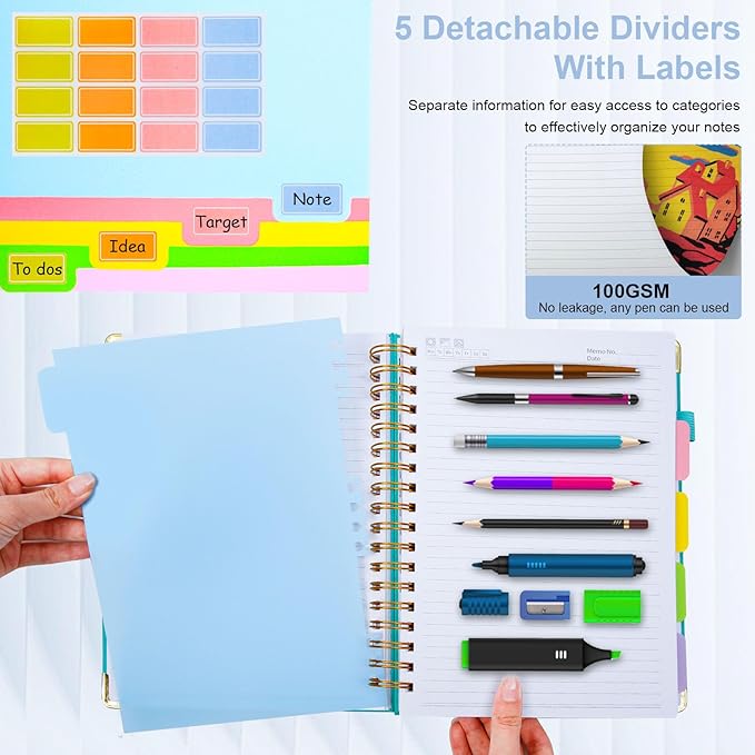 - Label compartment:Organize smarter with 5 movable dividers and 8 adhesive labels. This 5 subject notebook transforms your writing experience by helping categorize different topics—ideal for students or professionals who prefer tidy, efficient note-taking.