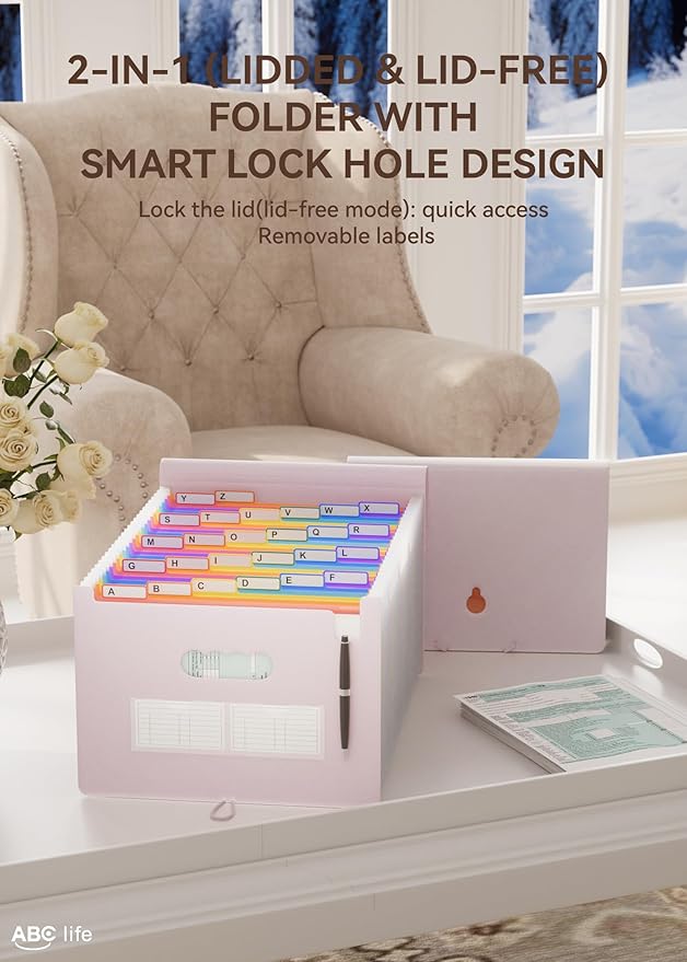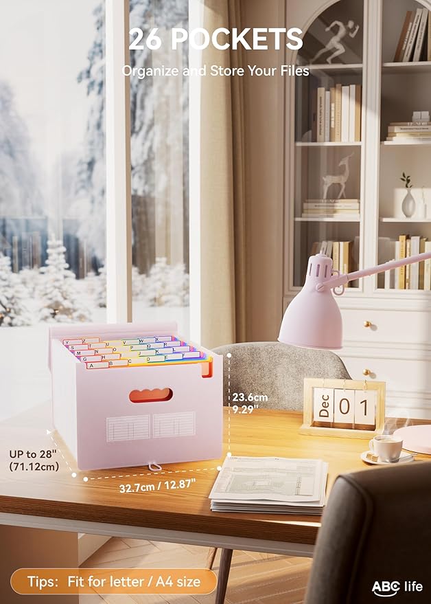 - 【26 Expanding File Folder】ABC life pockets accordian file organizer suitable for filing tax and storing important family documents. Product size is 13 "x 9.4"x 28", top and bottom are both expandable, For letter/A4 size files.