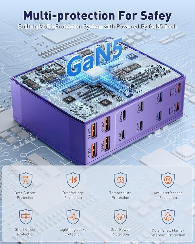 - 【Universal Compatibility】Our USB C charging station is equipped with 2*100W and 2*65W fast charging ports, which can charge 3 or more laptops at the same time. Compatible with smartphones, tablets and laptops, suitable for MacBook Pro/Air, Dell XPS, iPad Pro, iPhone 16/16 Pro Max, iPhone 15 Pro Max, iPhone 14/13 Pro/12 Pro Max, iWatch, AirPods, Surface Pro, Galaxy S24 Ultra, Switch, Steam Deck, Google Pixel and many other devices.