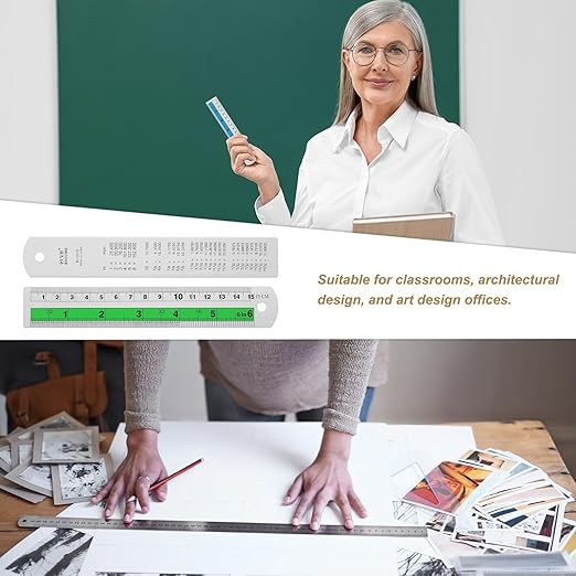 - Feature - The ruler features ink printing technology on its surface, ensuring that the scale is clear and sharp, remaining non-fading and non-blurring even after long-term use. It has a dual-scale design, and the back is carefully printed with a complete set of conversion formula for metric and SAE units, allowing beginners to quickly master unit conversion skills. Additionally, it includes a hanging hole design for convenient storage and accessibility.