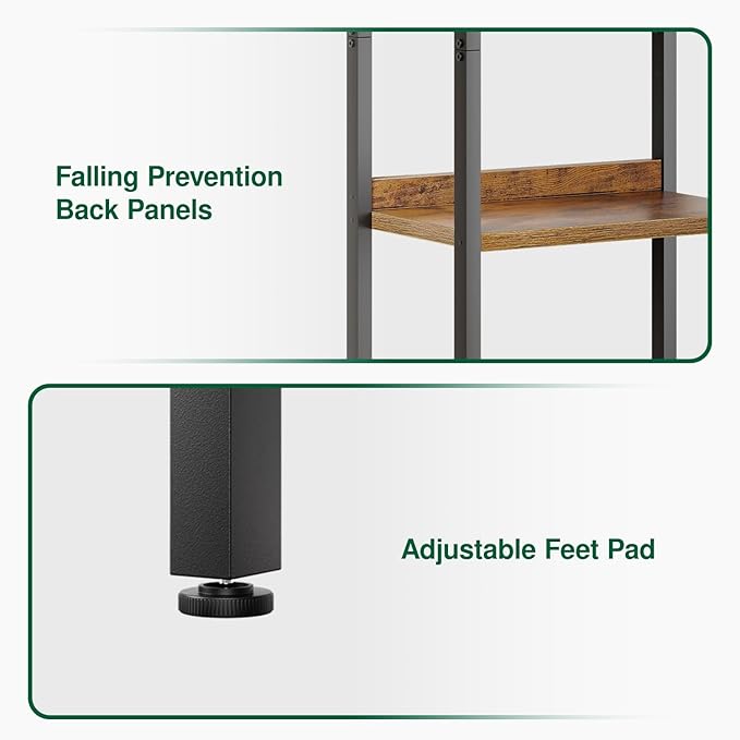 - 【ADJUSTABLE FEET】Equipped with 8 adjustable plastic feet to compensate for uneven floors and protect your flooring when moving the bookshelf.