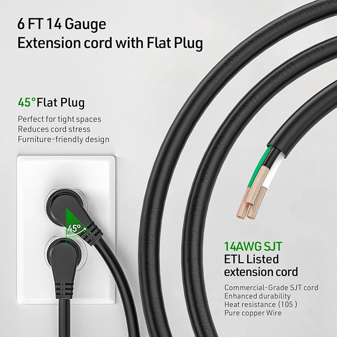 - [Space-Optimized Performance] - Engineered thin at just 1.6" (4cm) yet packs 8 generously spaced outlets (1.77in gap) to accommodate bulky adapters. Features a 6ft 14AWG reinforced cord with low-profile plug and integrated cable tie for clutter-free deployment.