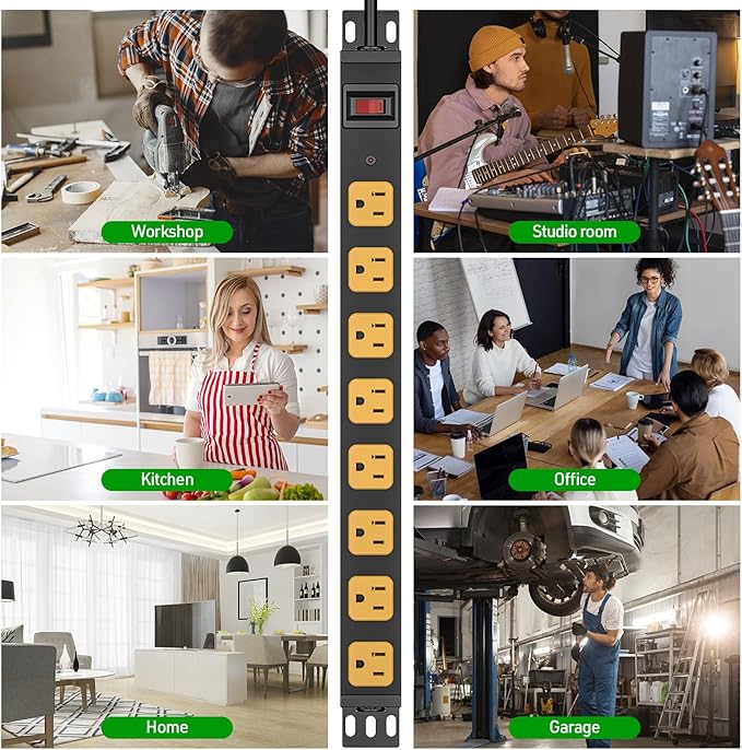 - [All-round Protection] Arm your electronics with robust 2100-Joule surge suppression. The integrated resettable 15A thermal breaker with visual alert provides failsafe overload protection, making it the defense standard for mission-critical environments: workshops, offices, home theaters, and garage labs.