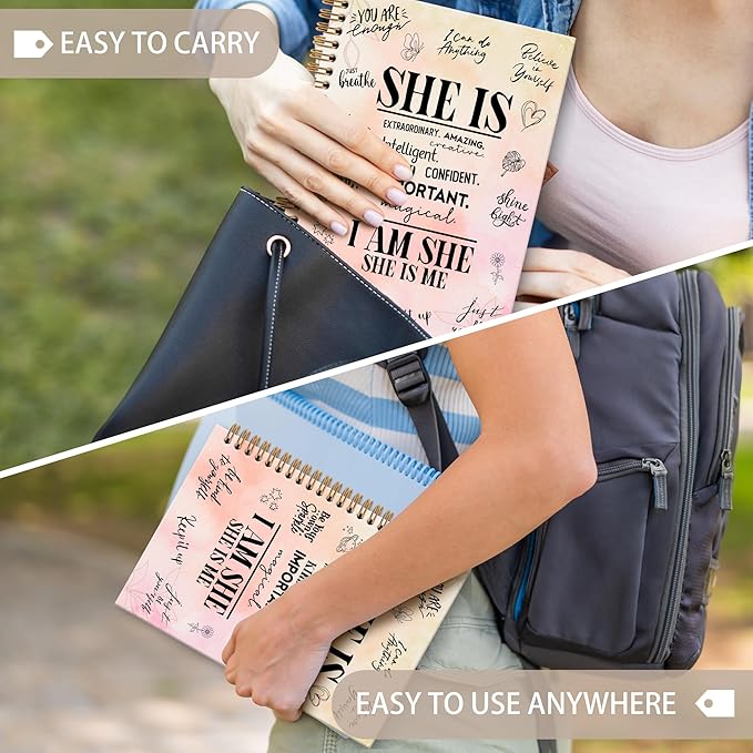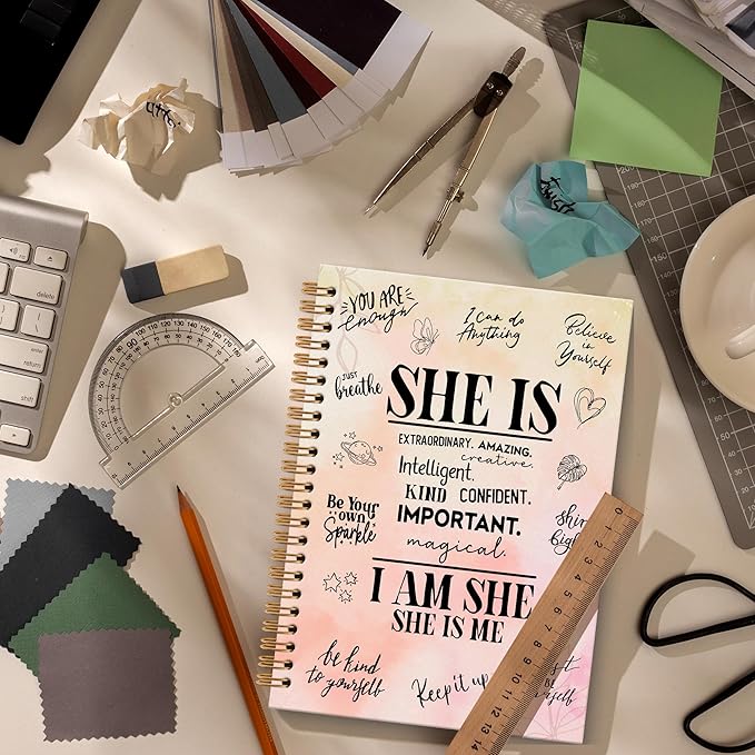 OINDADE Motivational Pink She is Notebook Journal, Self Care Pink Spiral Notebook, Self Love Motivational Notebooks Gifts for Women Girls, Positive Women Gifts School Office Supplies, 6x8.2In