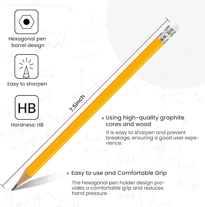 - BREAK-RESISTANT SMOOTH WRITING CORE:High-density HB graphite core delivers exceptional strength and smooth gliding performance. Engineered to resist fracture under pressure, producing bold, smudge-free lines for extended writing sessions and precision drafting. Maintains consistent darkness without feathering. Superior graphite adhesion allows effortless erasure when required. Reliable for technical drawing, report documentation, or creative projects demanding unbroken line integrity.