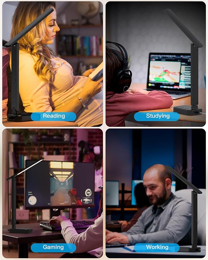 - 【 Touch Dimmable LED Desk Lamp 】 - Features 4 color temperatures and 5 adjustable brightness with 6500k illumination, enabling you to customize the light you want. This desk light can be easily controlled by the integrated touch buttons. It can be used as an ambience lamp, reading lamp, nail lamp, night light, study lamp, desk lamp for home office, bedroom, dorm room, living room and gaming room.