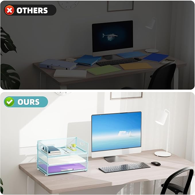 - 【PREMIUM QUALITY】The mesh desktop file organizer is made of lightweight durable metal mesh and reinforced with a solid steel frame that makes it have long-lasting strength and reliable performance.