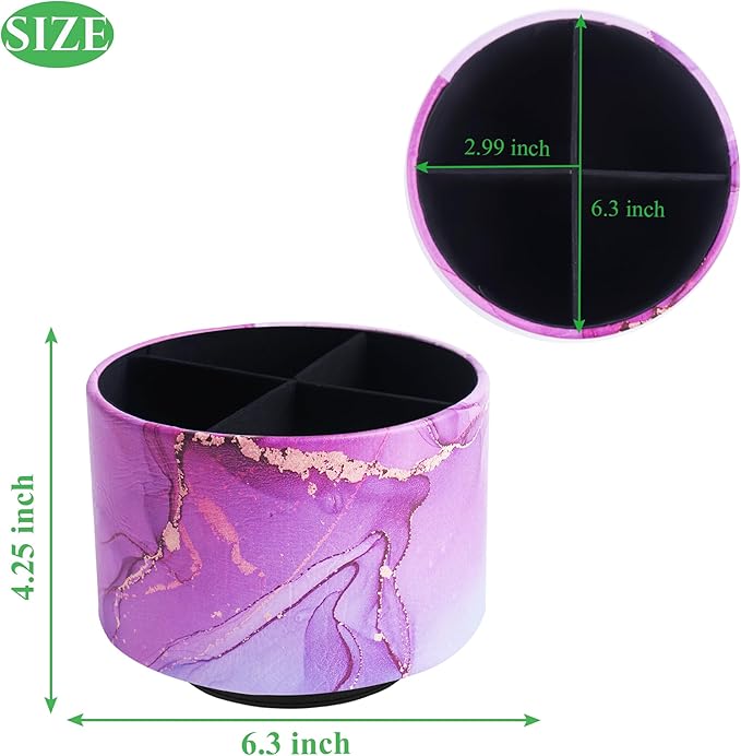 Round Leather Art Supply Organizer,Remote Control Holder,360-degree Rotating Pen Organizer with 4 Compartments(1-Purple Blue Splash Ink)