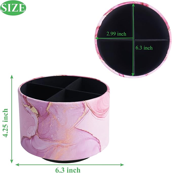 Round Leather Art Supply Organizer,Remote Control Holder,360-degree Rotating Pen Organizer with 4 Compartments(1-Pink Splash Ink)