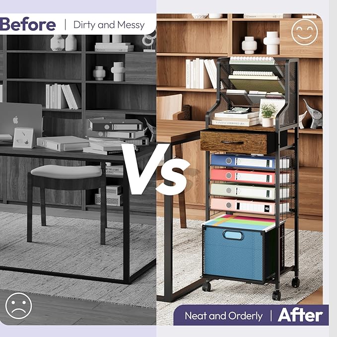 - [Smart Folder Management]: Lower drawer holds hanging folders like a dedicated folder holder, while compact tiers act as a reliable file folder holder and paper file organizer. Perfect for those managing multiple categories at once