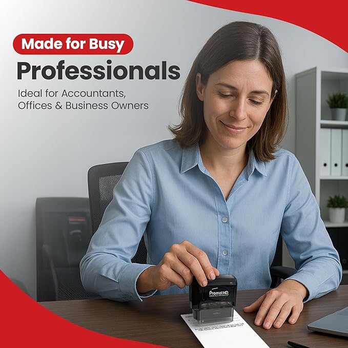 - Custom Rubber Stamp: Built with robust materials for high-volume use, it stands up to daily wear and tear. Its ergonomic design makes it comfortable to use. A great tool for any busy office or financial operation.