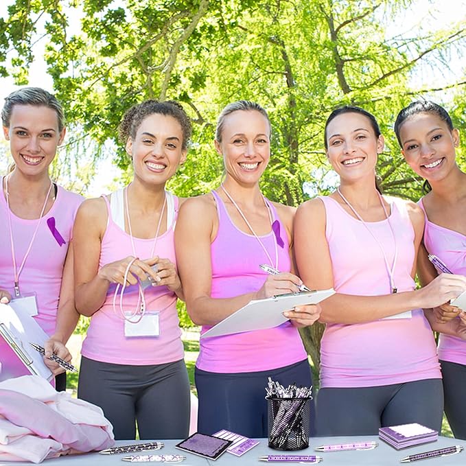 - October's Must-Have Awareness Toolkit: This purple Domestic violence awareness bulk set provides everything needed in one package. It includes 24 domestic violence awareness ribbon retractable ballpoint pens, featuring 6 distinct designs and 24 stop domestic violence Sticky Notes, featuring 12 distinct designs. The sticky notes are easy to use and feature unique layouts for different writing needs, while the high-quality pens ensure smooth, consistent writing. This thoughtfully curated collection serves as both a practical tool and a powerful reminder of support for survivors