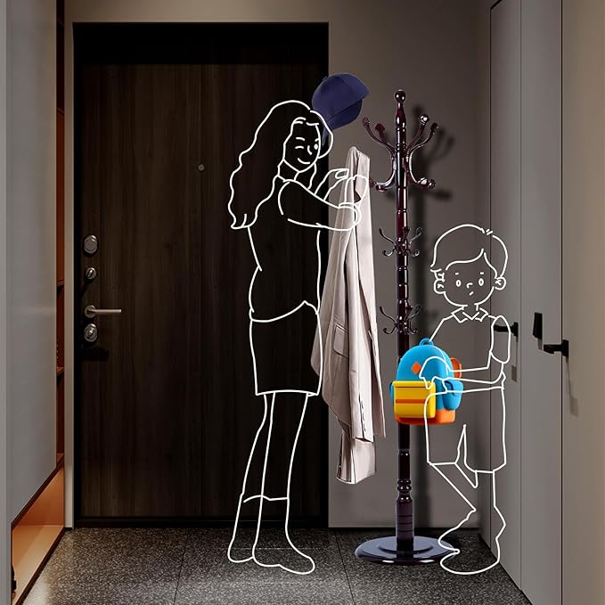 - 【A CLEAN AND TIDY HOME】Do you have the same trouble of disorderly arrangement of things? This freestanding coat rack can make your home look neat.Leave it by the door and use it when you go home or out, easily hanging up your jackets and bags, hat or coat,saving you time to organize.I believe you will love it!