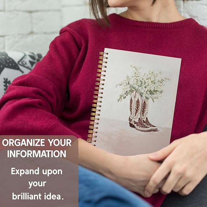 KAOWT Cowgirl Notebook Journal, Rustic Floral Western Notebooks for Note Taking, Cowgirl Gifts, Vintage Boho Western Country Hardcover Spiral Notebook 5.5x8.3in