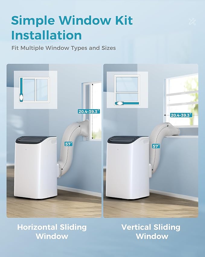 - 𝐓𝐡𝐞 𝐆𝐮𝐚𝐫𝐚𝐧𝐭𝐞𝐞 𝐨𝐟 𝐀 𝐏𝐞𝐚𝐜𝐞𝐟𝐮𝐥 𝐒𝐥𝐞𝐞𝐩: Experience better sleep with our portable air conditioner in Sleep mode, which can reduce fan speed to 46 dB. Our portable AC has a considerate feature to dim the control panel, let you enjoy peaceful rest. Also, this unit is packed with a 24H timer and an automatic swing function. This AC can gracefully powers down on the set time, maintaining the comfort while you sleep. ***This room air conditioner's window kit is NOT eligible for installation on the sides of windows between 20.5 inches and 30 inches. If your window falls within this range, you may need to carefully trim/cut the mounting kit to ensure proper installation