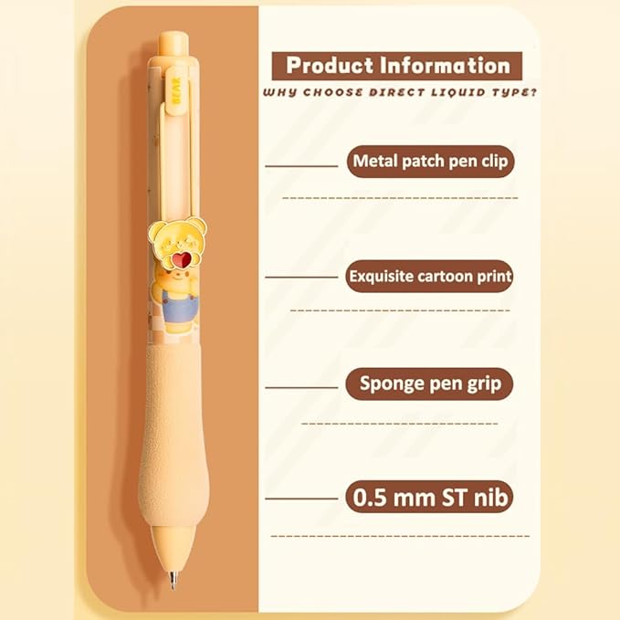 - Package Includes:5Pcs Gel Ink Pens Retractable Pens,Cute Bear style,5 pens are different design, Each pen is unique.