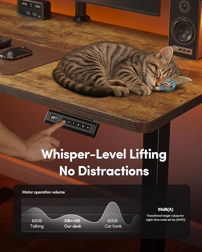- 4 Memory Height Presets: The Fezibo Electric Standing desk features an intuitive LED controller for quiet operation. It allows you to save up to 4 custom height settings to seamlessly switch between your preferred heights, ensuring you have a focused, distraction-free workspace.